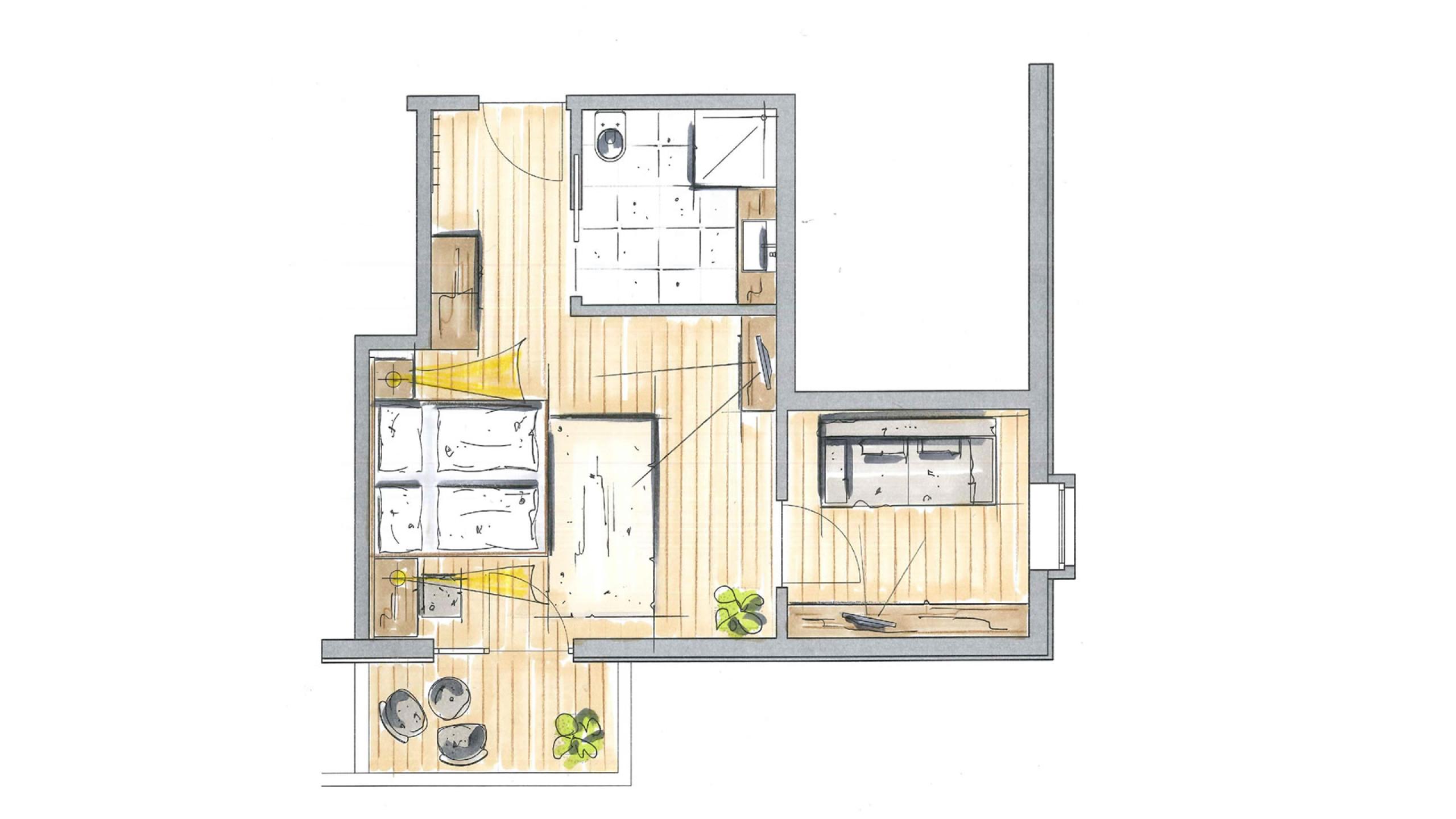 Our family-friendly room will make young and old feel at home. Separation of the sleeping areas gives the environment a harmonious feeling, and in the morning, in the large bathroom, all family members can brush their teeth at the same time.
