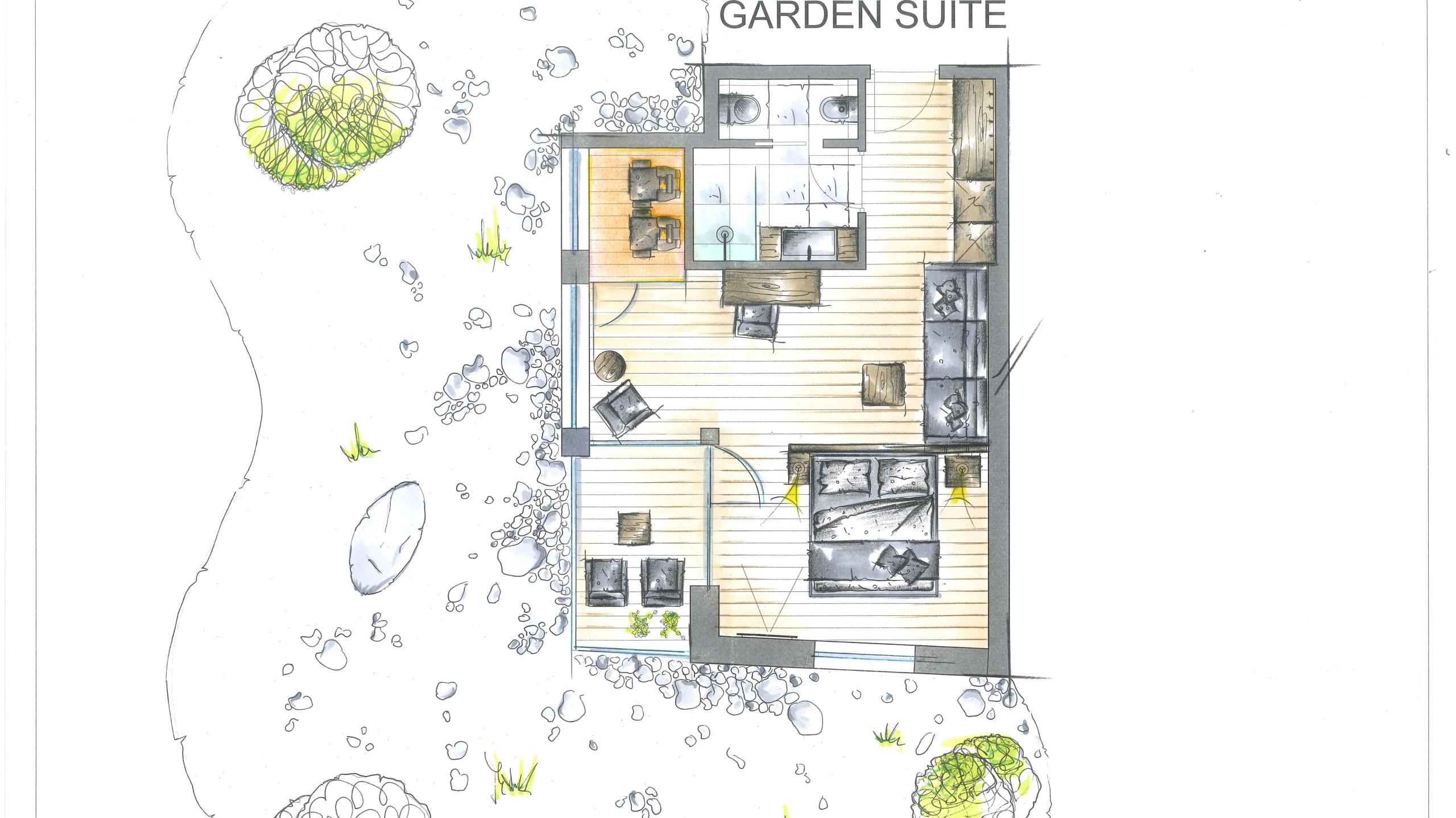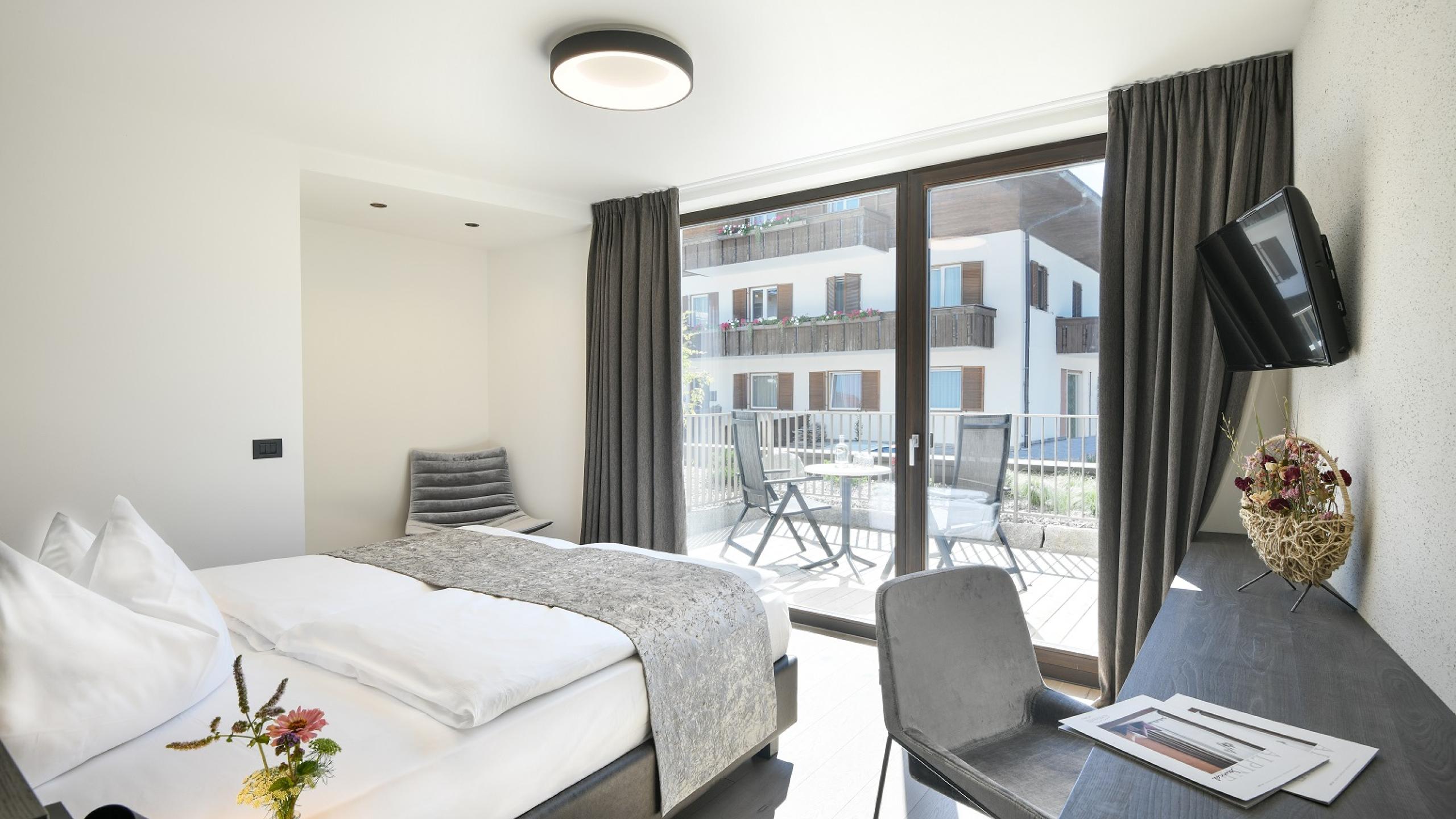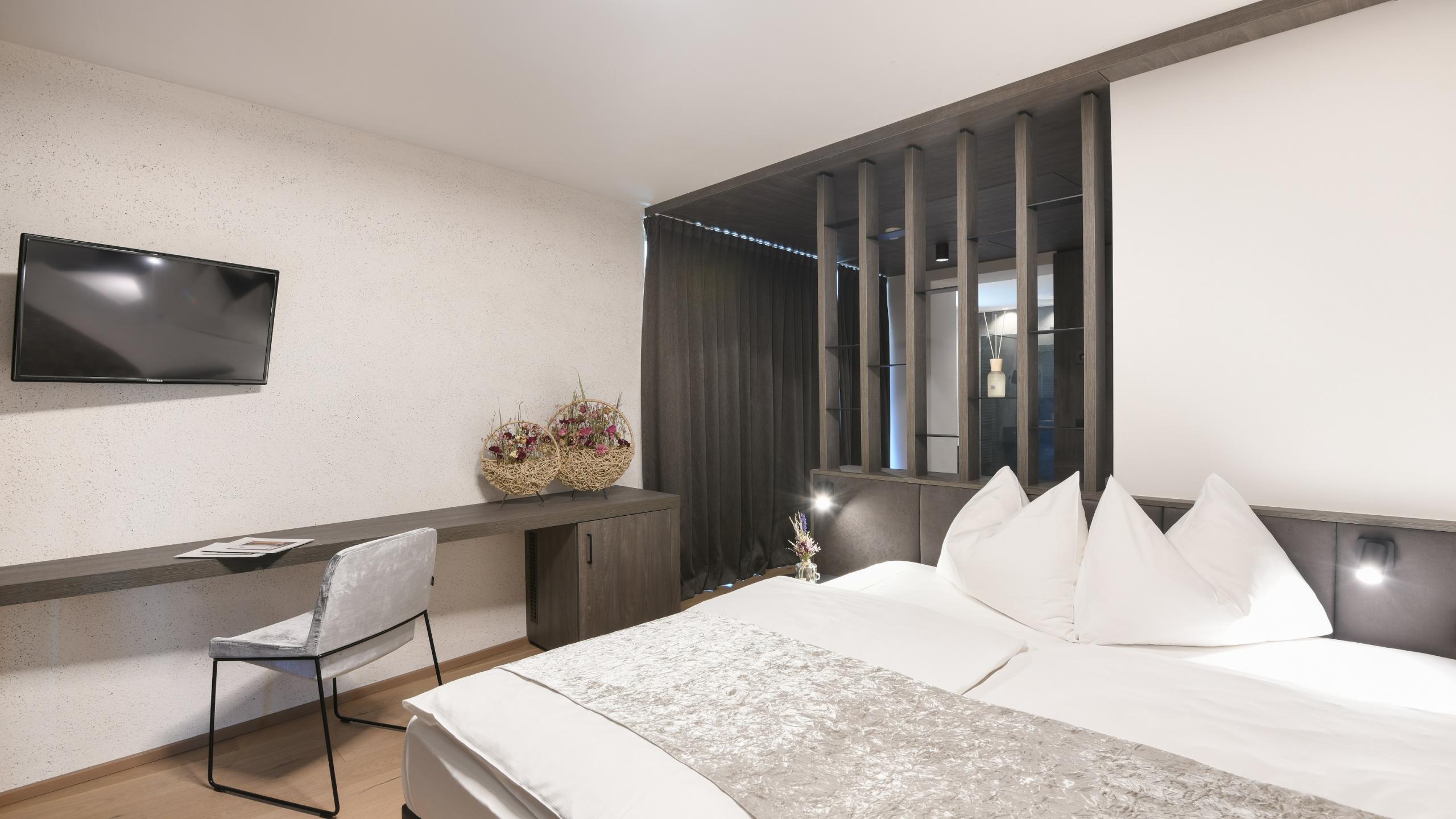 In our Garden Suite in alpine modern style with light wooden floor in natural oak, there is place for everyone and you can enjoy the comfort in pleasant company. The modern, natural colors, a warm interior and a private south-east terrace are just some of the great highlights. The highlight: infrared sauna in the room.
