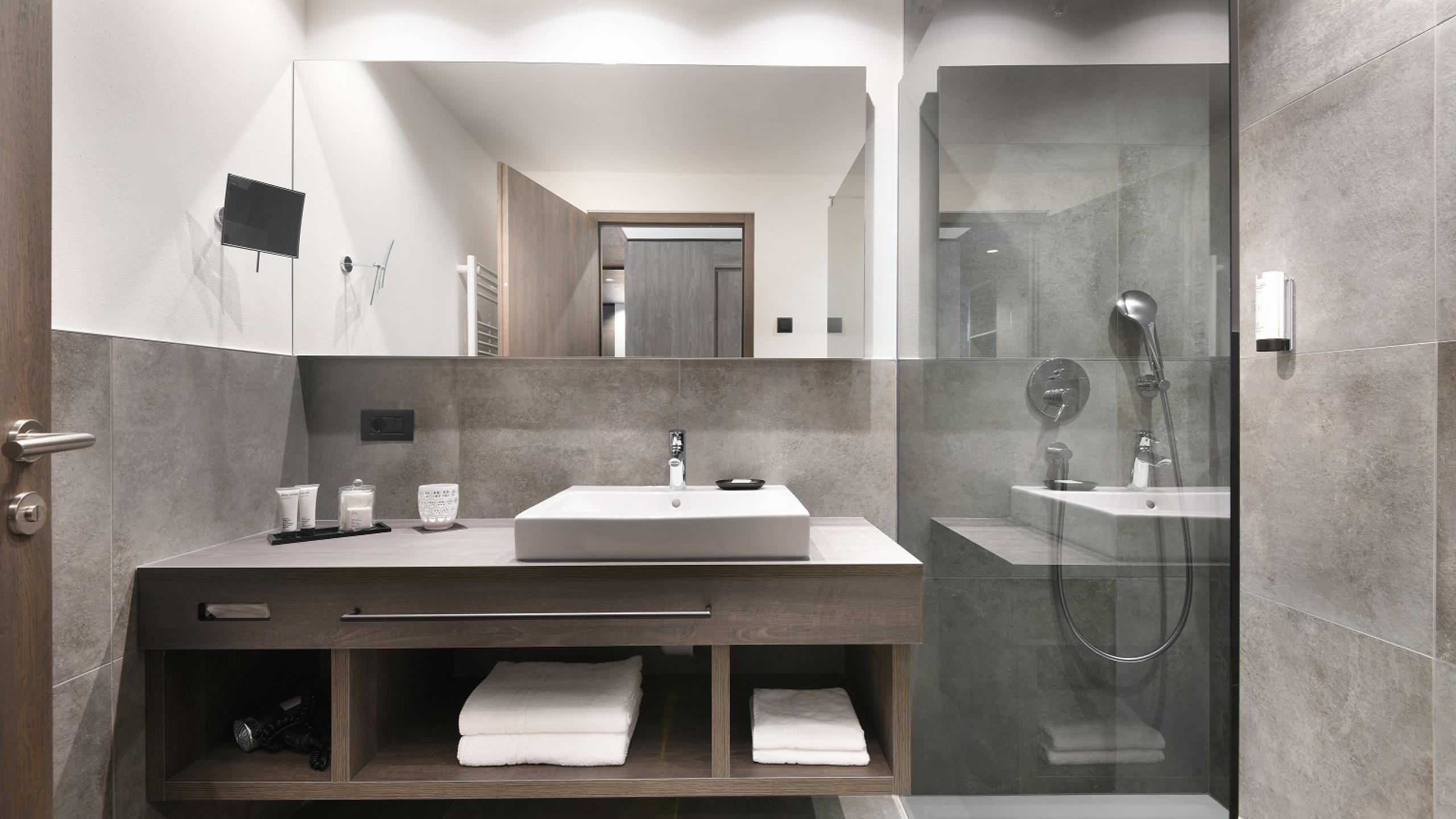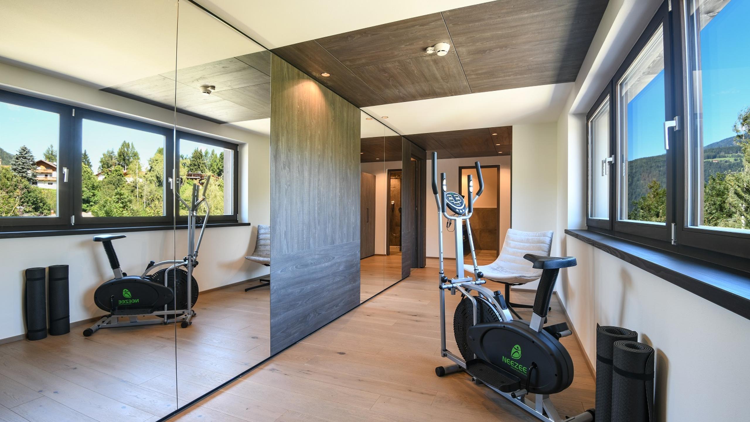 In unserer neuen Sportive Suite dominiert helles Eichenholz mit modernen Farben der Dolomiten. Tolle Panoramafenster, der großzügige Kleiderschrank und die Maxi-Dusche im modernen Badbereich bieten Komfort für bis zu 4 Personen. Das Highlight: eine Yogamatte liegt bereit, um benutzt zu werden.